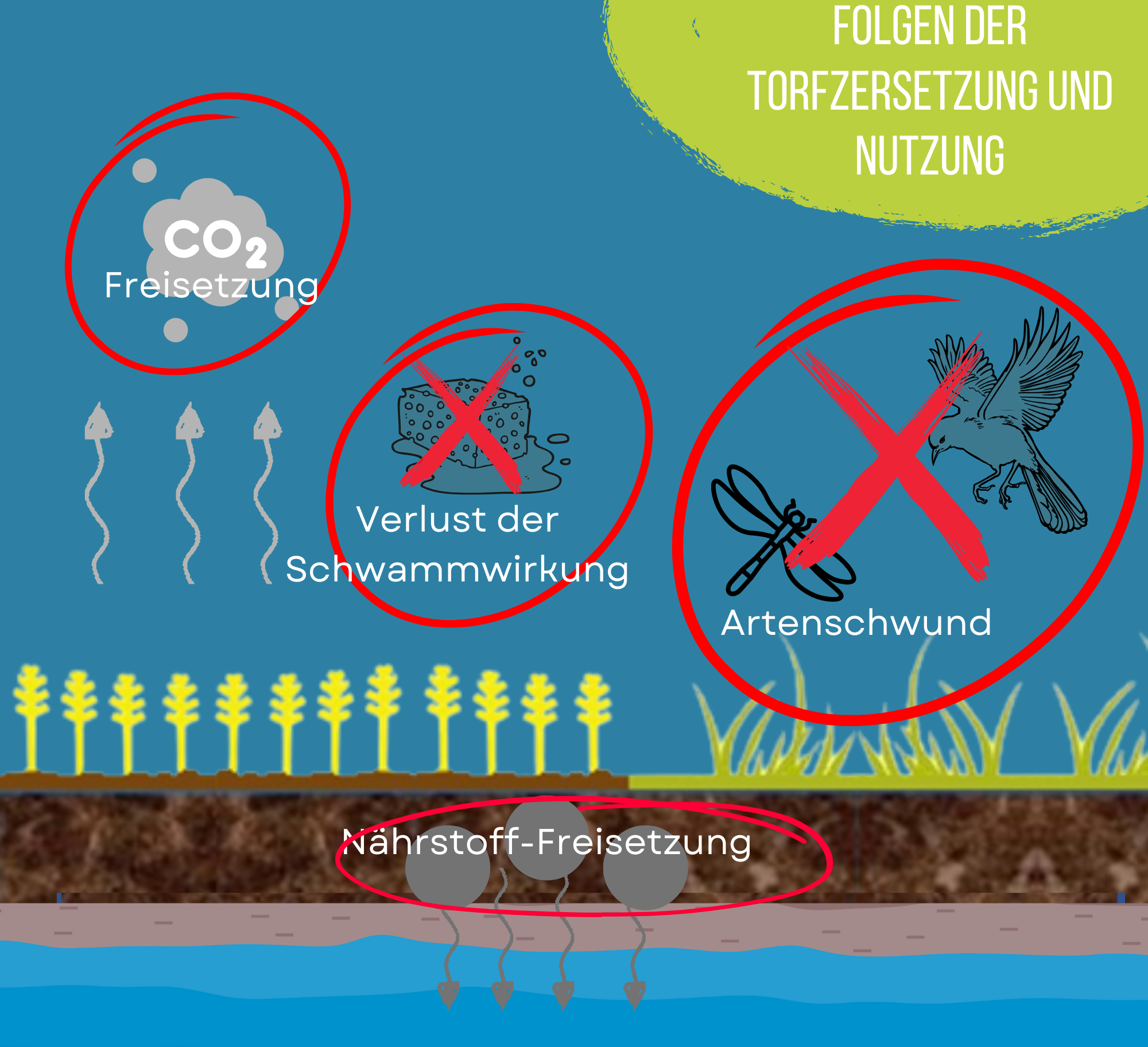 Dadurch sind sowohl der Torf als auch die moortypische Vegetation stark gefährdet.