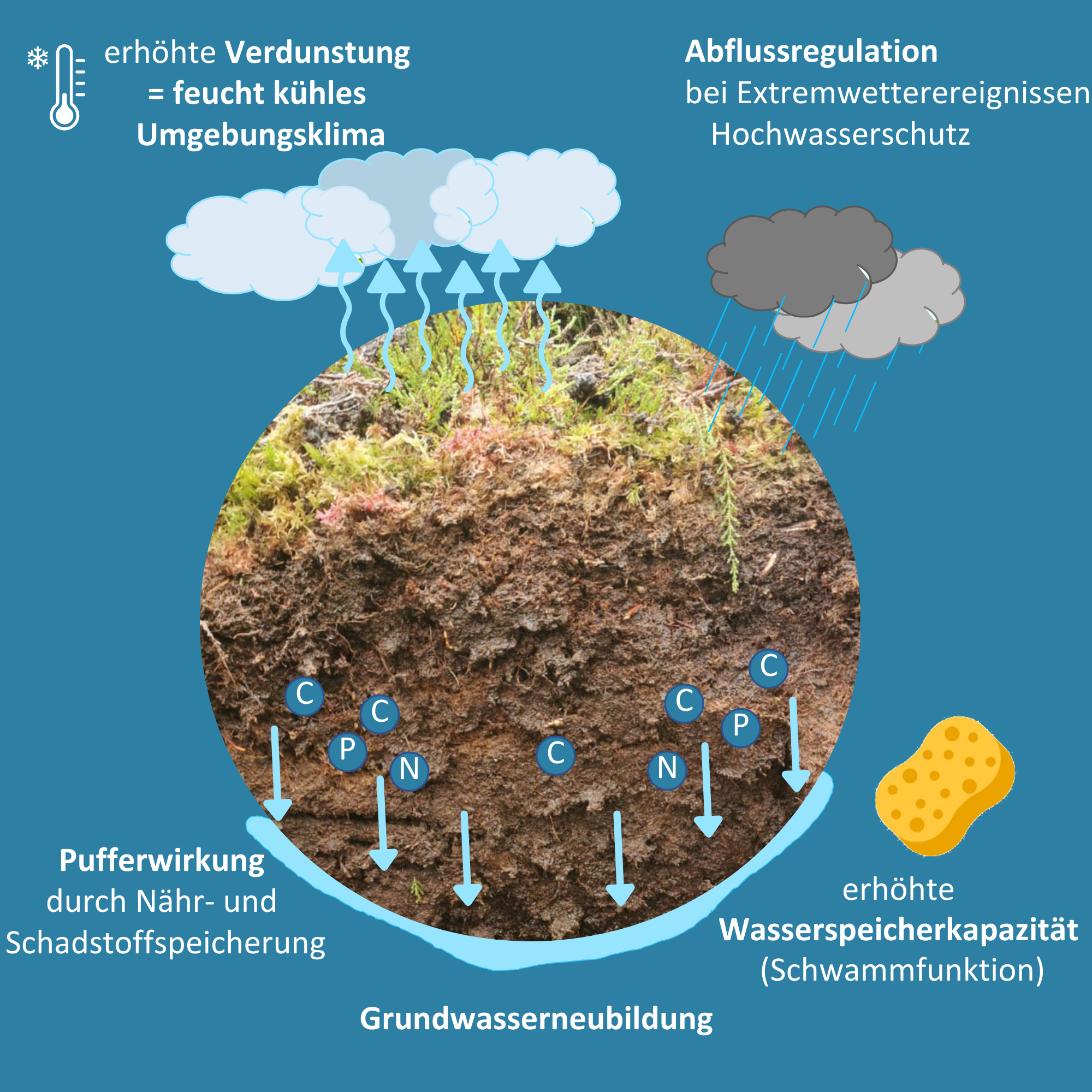 Torfböden übernehmen vielfältige und lebenswichtige Funktionen: